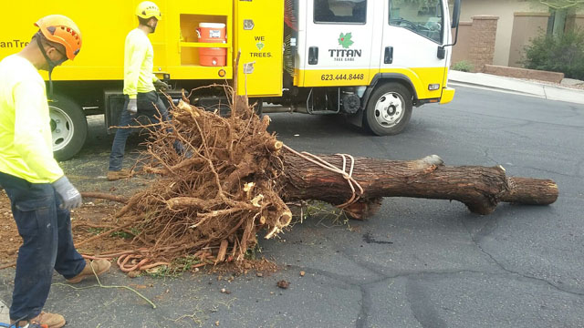 Titan Tree Care is a full-service tree care company located in Anthem, AZ and serving all of North Phoenix. We offer a wide range of services to meet your tree care needs, including tree and palm trimming, tree pruning, tree removal, stump grinding, and more. We also offer insect or disease treatments and fertilization services. We are dedicated to providing high-quality, safe, and effective tree care services to our customers and work hard to ensure that your trees are healthy and look their best.